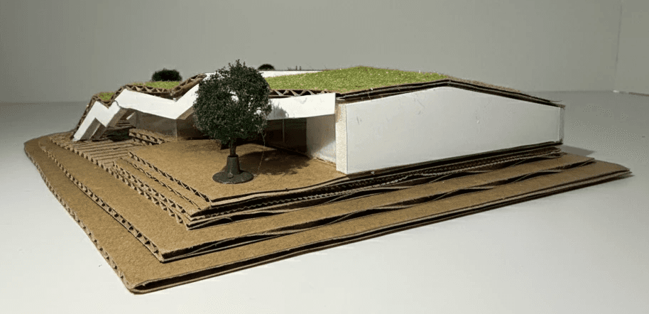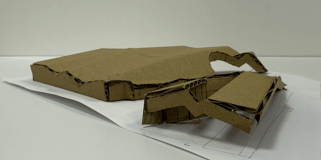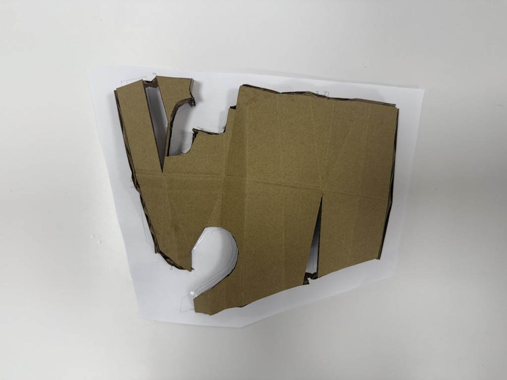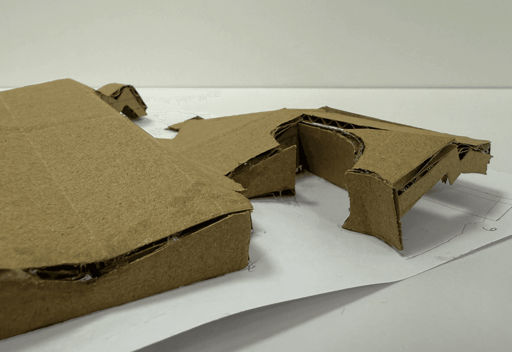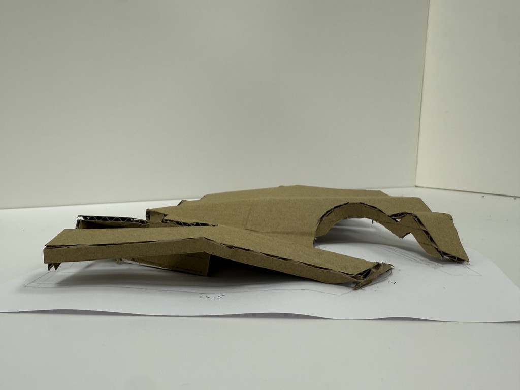 The second prototype helped me understand the model's overall size and how all the parts fit together better. I made the changes from the first prototype to make sure that all of the measurements were correct. This prototype was made entirely of cardboard because my final model would use cardboard and foam board to make a smooth finish. I could weigh cardboard and figure out how to support it because it is heavier and less flexible than paper. To make it stable, I used a foam block that was shaped to fit the inside of the structure. Most of the pieces in this prototype fit together well, but some small changes were still needed to make the final product better.