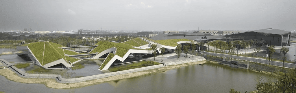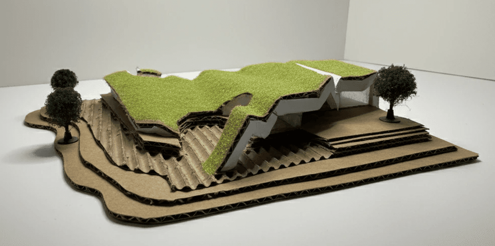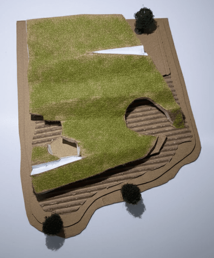 After learning how to make forms out of different materials, we had to pick a real-world structure to copy. I chose the Giant Interactive Group Headquarters designed by Morphosis Architects because I was very interested in how well it combined architecture and landscape. But I decided to focus on the landscape part of the design because the whole building was very big and complicated. This allowed me to look at and understand the process of modelling the environment's topography, levels, and spatial flow in more depth.