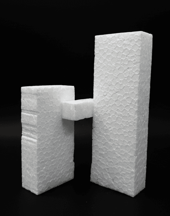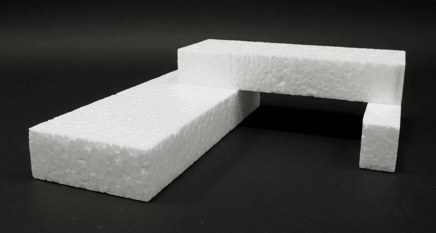We started investigating how these separate components could combine to create coherent structures as we learnt how to make foam forms. In order to gain a more controlled understanding of the relationship between planes, edges, and volumes, we first concentrated on rectilinear forms. The balance between the dominant, subdominant, and subordinate forms was emphasised in each of the three ideations I made in the early stages.